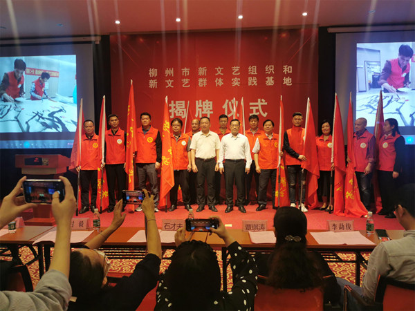 柳州市文联在石尚1966文化产业园区23栋5楼多功能厅召开柳州市文艺界纪念毛泽东同志《在延安文艺座谈会上的讲话》发表80周年座谈会,并举行柳州市新文艺组织和新文艺群体实践基地揭牌仪式暨“喜迎二十大 建功新时代”——柳州文艺志愿者在行动主题活动启动仪式。