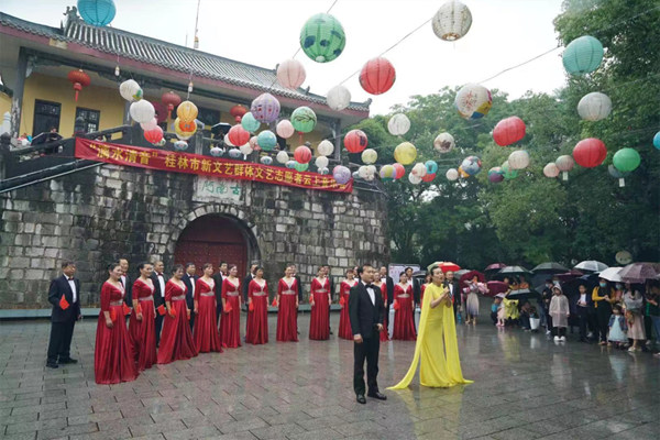 桂林市文联组织开展“漓水清音——桂林市新文艺群体文艺志愿者云上音乐会”在桂林市两江四湖榕湖景区实景演出,线上直播。