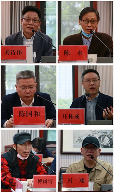 李建华、陈永、张冀、陈国和、杨彬、沈伟、庄桂成、刘诗伟、李瑞洪、周璐、蔡家园、田天、瞿忠谋、傅树清、路羽、邱石、韩昶光、冯翔等来自武汉各个文艺门类的20余名文艺工作者参会,大家各抒己见、畅所欲言,会议气氛热烈而融洽。