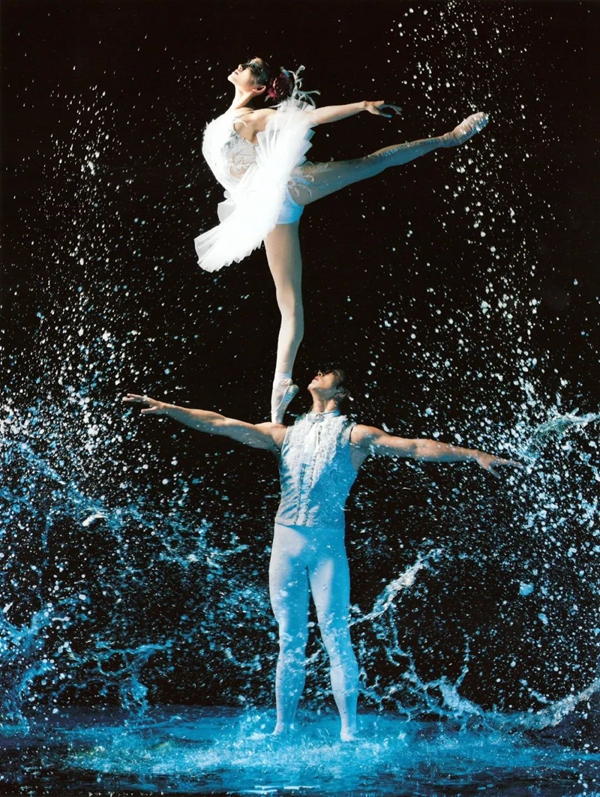 比赛开始伴随着音乐节奏,扮演“白天鹅”的吴正丹舒缓地转体,轻盈地起舞,忘情地飞翔。“双足尖站立手臂”、“单脚尖站肩接站头接旋转360°”、“绕场回左肩控前腿变控后腿”……芭蕾舞中的经典动作“阿拉贝斯转”、“苏提钮”被巧妙地“移植”到扮演“王子”的魏葆华的肩上和头顶。