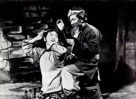 王昆在《白毛女》中饰演喜儿,右为张守维饰演的杨白劳