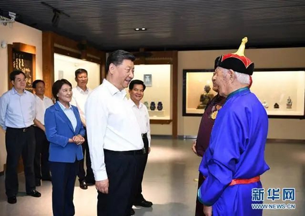 2019年7月15日至16日,习近平总书记在内蒙古考察并指导开展“不忘初心、牢记使命”主题教育。总书记来到赤峰博物馆,了解红山文化等史前文化发掘保护情况和契丹辽文化、蒙元文化等历史沿革。古典民族史诗《格萨(斯)尔》起源于中国蒙古族和藏族民间,流传于蒙古族、藏族等民族聚居区,与《江格尔》《玛纳斯》并称中国少数民族“三大英雄史诗”。总书记观看了《格萨(斯)尔》说唱展示,并同《格萨(斯)尔》非物质文化遗产传承人亲切交谈。