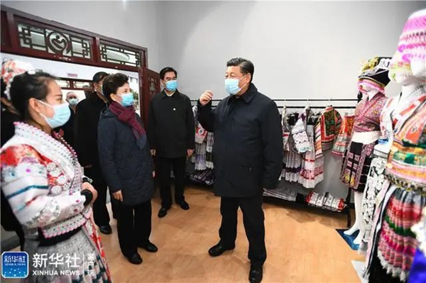 2021年2月3日至5日,习近平总书记来到贵州考察调研。在以苗族为主的中国民间文化艺术之乡化屋村,总书记走进扶贫车间,了解发展特色苗绣产业、传承民族传统文化等情况。总书记指出,民族的就是世界的。特色苗绣既传统又时尚,既是文化又是产业,不仅能够弘扬传统文化,而且能够推动乡村振兴,要把包括苗绣在内的民族传统文化传承好、发展好。