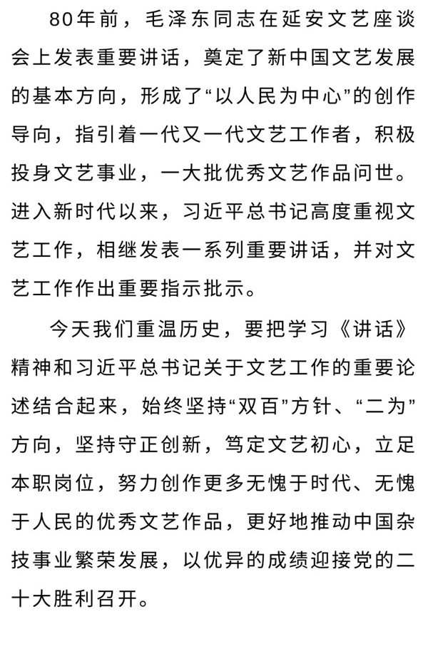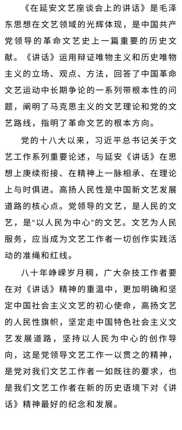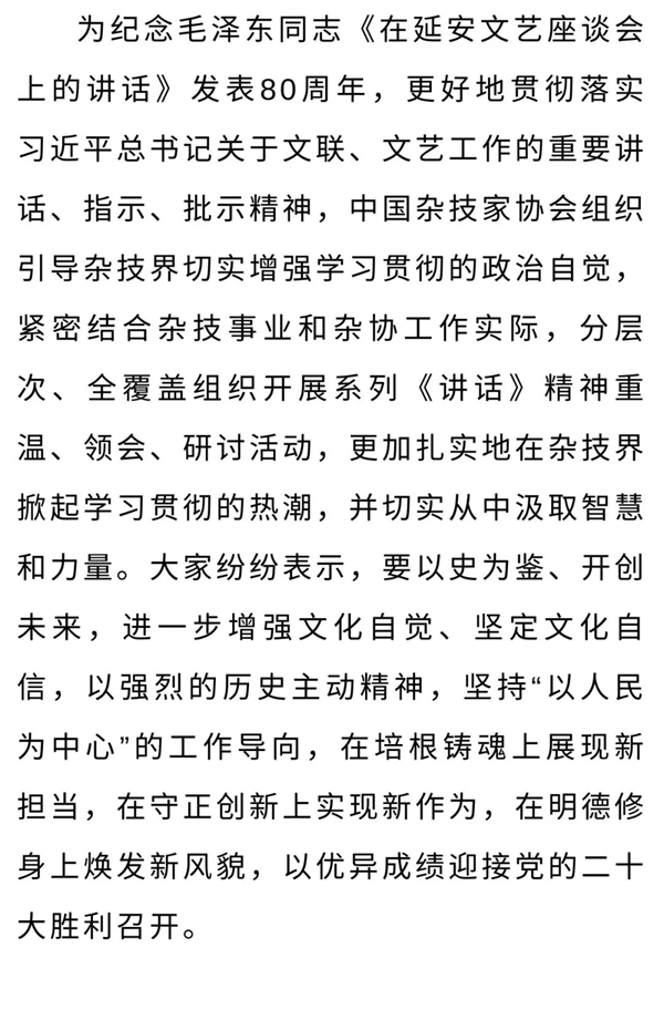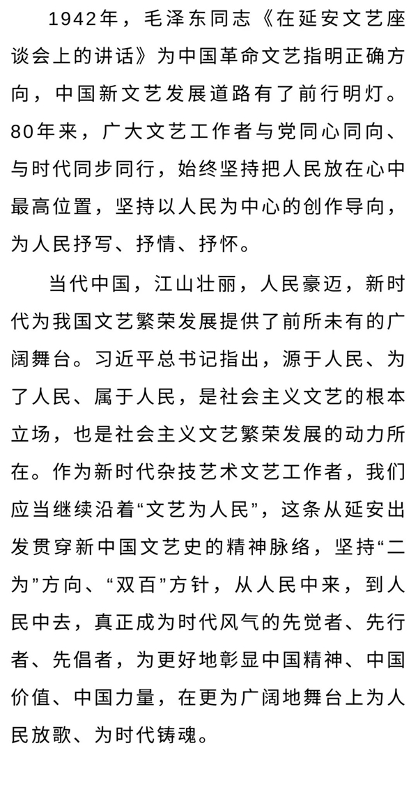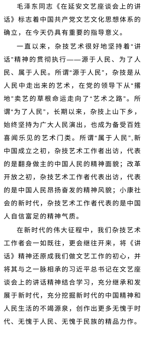 原标题:与人民同心 与时代同行——杂技界纪念毛泽东同志《在延安文艺座谈会上的讲话》发表80周年