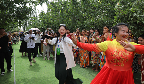 全国青联常委、文化艺术界别工作委员会副秘书长,中国舞蹈家协会街舞委员会常务副主任兼秘书长夏锐以《民族民间舞的当代表达和网络传播》为题进行专业授课辅导。他以“中华街舞系列”作品的创作过程为例,生动展现了通过街舞艺术这一深受青年喜爱、具有广泛网络影响力的舞蹈形式创新传统民族民间舞、讲好当代中国故事、展现当代青年人奋发向上精神风貌所作出的不懈努力。辅导课当天在当地晚会上,独具新疆民族特色的音乐与街舞流行文化融合幻化在舞台之上奉献给当地群众,既传承了中华文化基因,又彰显了当代中国青年奋发向上的时代风貌。