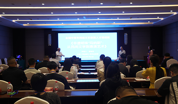 中国《玛纳斯》研究会理事、新疆克孜勒苏柯尔克孜自治州非物质文化遗产保护领导小组顾问贺继宏以《非遗明珠“玛纳斯”:从民间文学到表演艺术》为题进行专业授课辅导,深入阐释了柯尔克孜族英雄史诗《玛纳斯》是如何从民间文学逐渐演变成为以民间说唱表演再到当代歌剧的历史。老一辈文艺工作者呕心沥血数十年保护弘扬传统文化的坚守让学员们感佩不已,优秀传统文化的精彩让学员热烈探讨如何以网络文艺形式来多样化创新式保护光大。