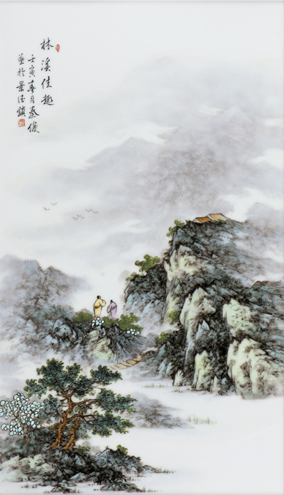 《林溪佳趣》 粉彩瓷板画 秦俊