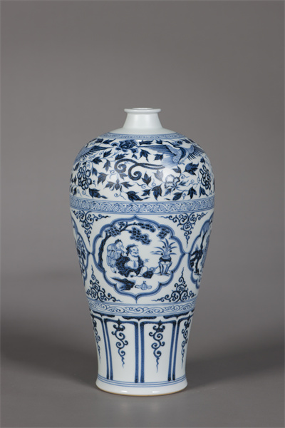 作品通体以青花绘制,分别绘有中国古代四位高士闲情逸致、恬静自然场景的四组画面情景交融,造型优美,充分体现中国瓷坛闻名遐迩元代青花瓷的艺术魅力。