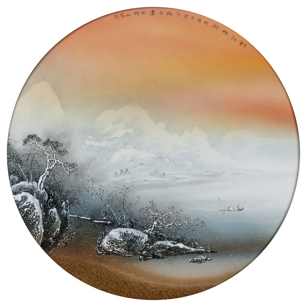 《寒江独钓》 高温颜色釉粉彩瓷板 严扬平