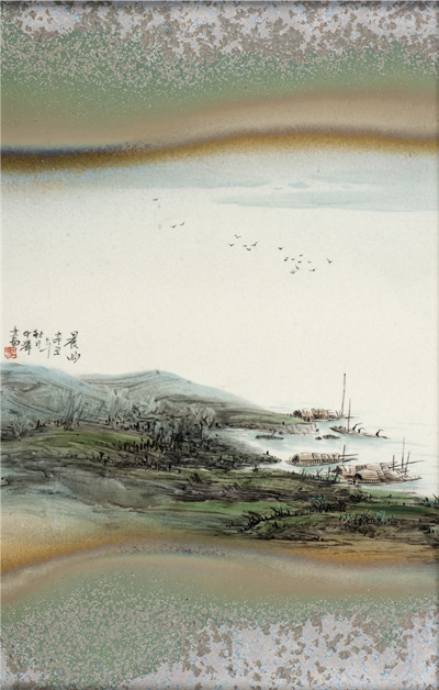 作品以独特表现手法描绘出完美生动的江河湖泊以及渔歌晨唱的和谐画面。