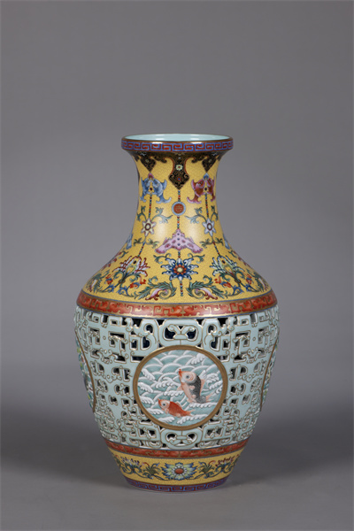 《仿清乾隆粉彩“吉庆有余”纹镂刻瓶》 阳士琦