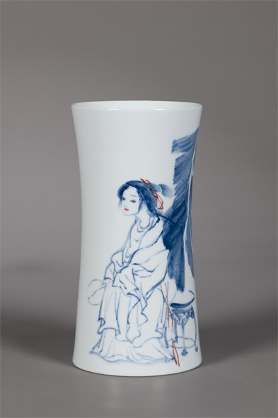 《芭蕉仕女图》 青花瓷瓶 傅长敏