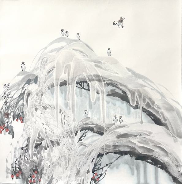 作品描绘了雪过天晴后的茫茫大地上,闪闪发亮的水晶树在阳光照射下的美景。