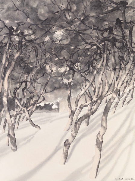 作品突出刻画了原生状态下松树独有的“挺劲”之姿,表达了“松树”在中国传统文化中不屈人格的象征。