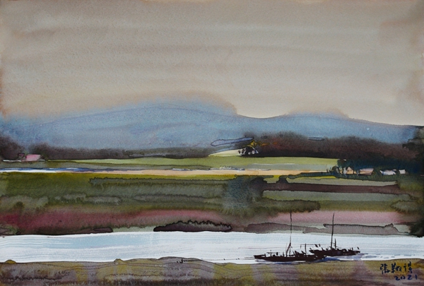 张翔得 《 渔舟唱晚之二》 纸上水彩