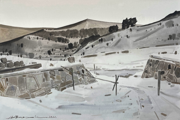 作品用黑、白、灰的对比来展现白山黑水的苍茫与厚重,用点、线、面的关系来丰富画面节奏,展现了龙江沃土的朴实与深沉。