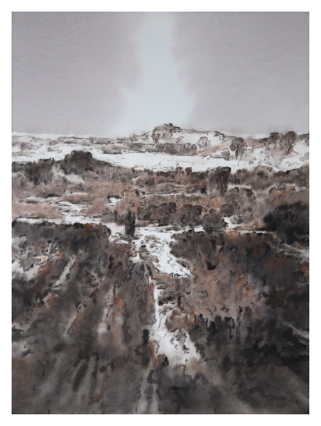作品通过对冬雪在春季融化后形成的残雪、黑土以及植物进行的描绘,表现了冬季东北风景特有的粗狂与深沉。