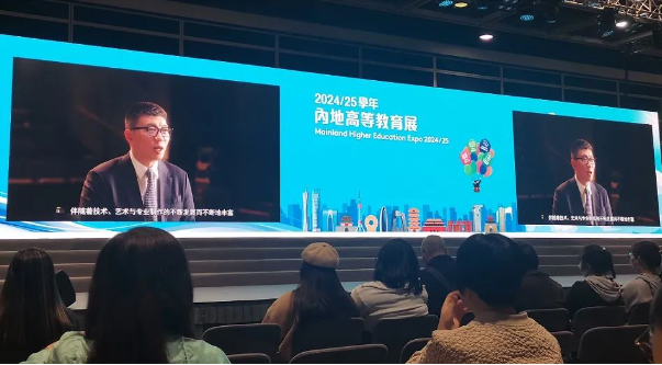 郝戎录制的艺术学学科讲解视频在展会上播放