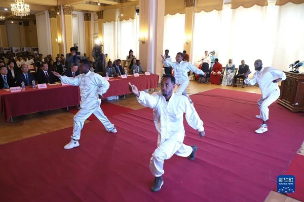12月4日,在埃塞俄比亚首都亚的斯亚贝巴,亚的斯亚贝巴大学孔子学院学生表演中国功夫。新华社发(迈克尔·特韦尔德摄)