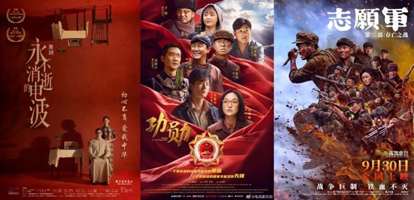 舞剧《永不消逝的电波》、电视剧《功勋》、电影《志愿军:存亡之战》海报