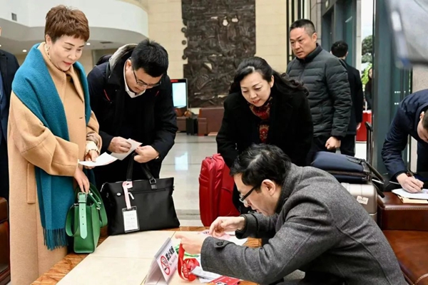 3月3日,住渝全国政协委员领取登机牌和行李牌。 秦杰 摄