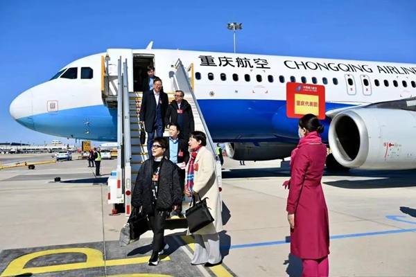 3月3日,住渝全国政协委员抵京。 秦杰 摄