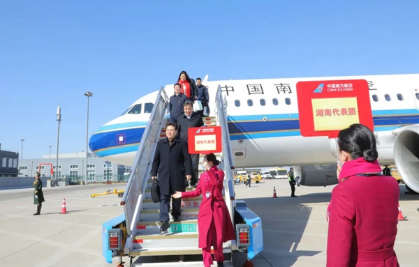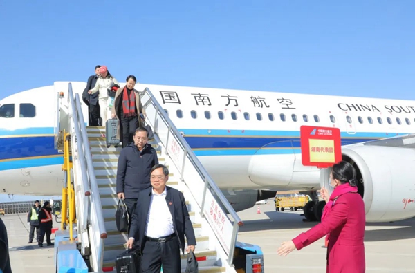 今天(3月3日)下午14时20分许,随着CZ5252次航班缓缓降落北京首都机场,出席全国政协十四届二次会议的部分住湘全国政协委员抵达北京,将分赴各住地向大会报到。