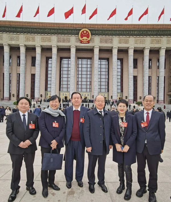 左起:全国政协委员、中央美术学院院长林茂,全国政协委员、中国音协副主席、上海音乐学院院长廖昌永,全国政协委员、中国文化产业协会会长张斌,全国政协委员、中国视协分党组书记、驻会副主席范宗钗,全国政协委员、一级演员张凯丽,全国政协委员、中国杂协分党组书记、驻会副主席唐延海