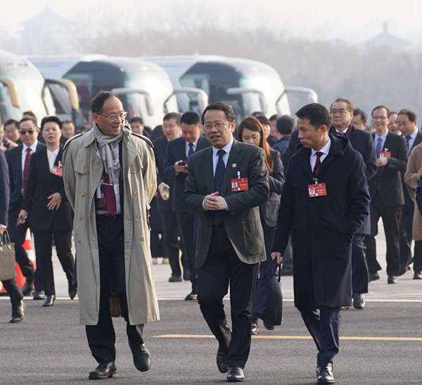 3月7日,全国政协十四届二次会议在北京人民大会堂举行第二次全体会议。这是全国政协委员走向会场。新华社记者 王建华 摄
