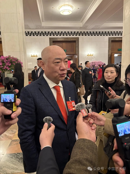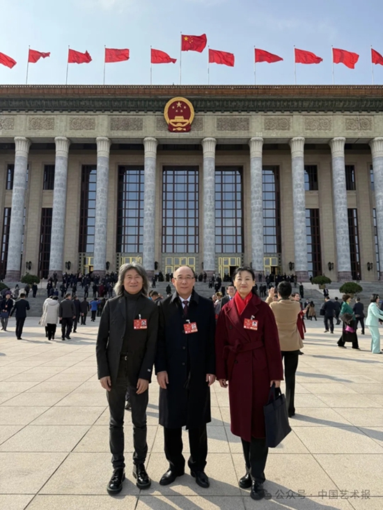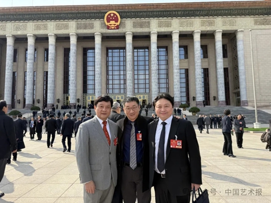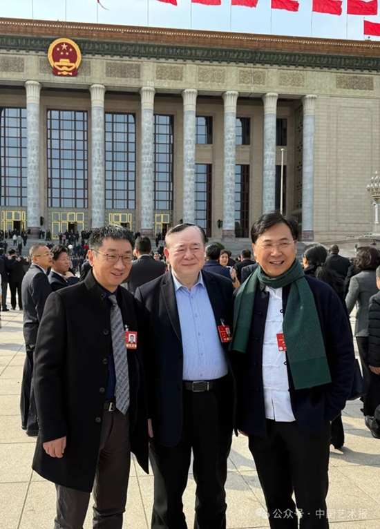 左起:全国政协委员、中国剧协副主席、中国戏曲学院院长尹晓东,全国政协委员、中国音协副主席、中国音乐学院院长李心草,全国政协委员、中央美术学院院长林茂