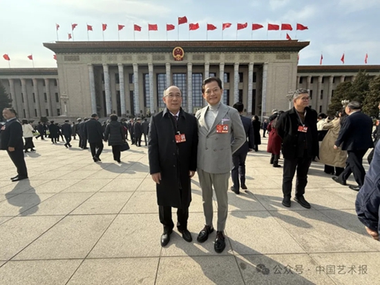 全国政协委员、中国广播艺术团团长刘学俊(左一),全国政协委员、香港歌剧院创始人兼艺术总监莫华伦