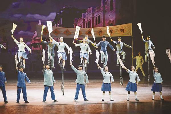 为纪念中国人民抗日战争暨世界反法西斯战争胜利80周年,6月19日晚,由云南省杂技团有限公司出品的革命题材剧目大型杂技舞台剧《聂耳》开启全国巡演,首站演出在昆明举行,未来将在江西、福建、江苏、河北等地演出。该剧以杂技为核心,融合魔术、歌舞等多元艺术形式,生动演绎聂耳的革命成长道路。图为《聂耳》首场演出在云南省大剧院上演。中新社记者 刘冉阳 摄