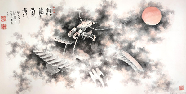 其作品通过黑白对比强化空灵与反差之美,将龙、凤、梅等中华图腾艺术融会贯通。