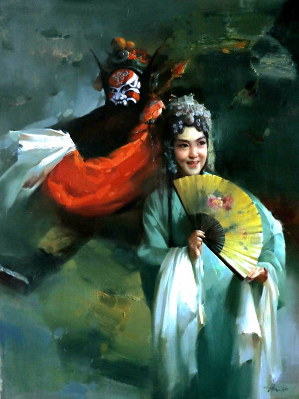 自幼受家庭影响,酷爱书画艺术。其油画作品将西方油画的写实技法与中国传统戏曲、脸谱等元素结合,通过色彩、光影与东方气韵的碰撞,形成“京剧油画”系列。他注重提炼中国文化的象征性形象,以“随类赋彩”的方式将戏曲人物的神态与透视结构相衔接。