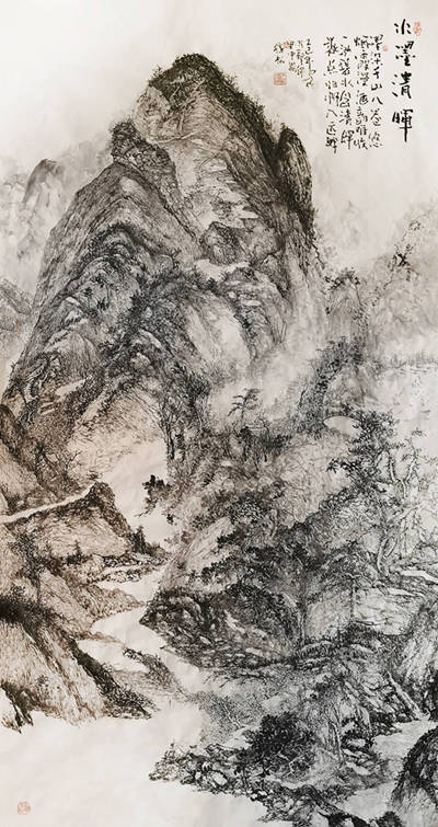 受家中前辈艺术熏陶,他自幼喜欢绘画,深入研究黄宾虹的山水画作,并不断实践练习积墨法,努力向黄宾虹的“五笔”之说靠近。丹青之余,兼攻书法,从二王之法,擅行草,精魏碑。