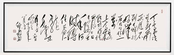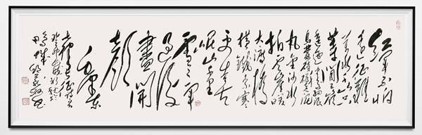 他深耕书法领域,以传承为基、创新为要,创作融入魏碑的古朴与行楷的灵动,形成 “结构奇纵、骨感飞扬”的书风。其笔势兼具力与美、灵与韵。创作多以自撰诗词联句为载体,将传统书道精神与个人心得感悟深度融合。