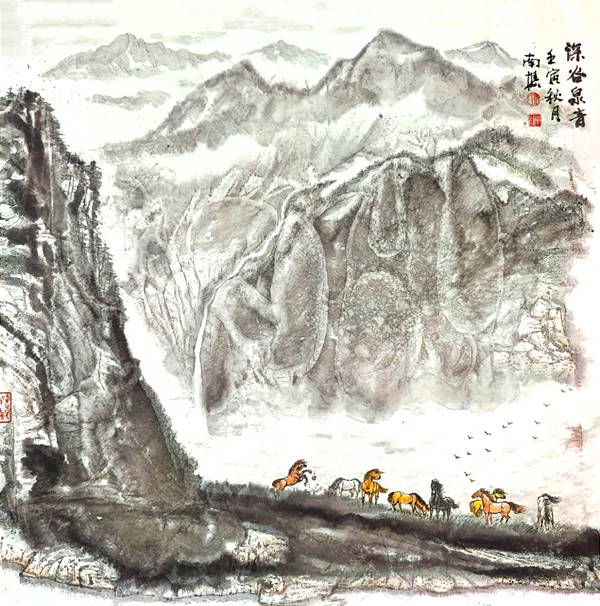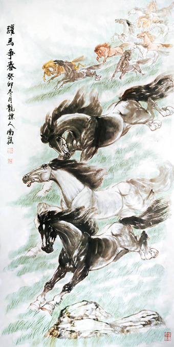 邓南樵融写意豪放与工笔细腻,勾骏马筋骨,作品墨色相宜、线条刚柔并济,兼传统“以形写神”笔意与时代气息。