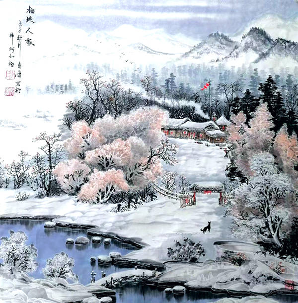 《雪乡春梦醉丹心》138cmX68cm