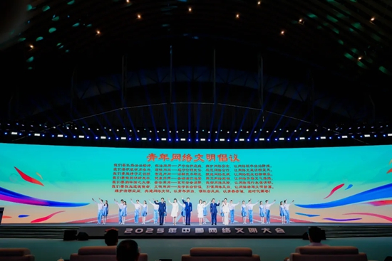 2025年中国网络文明大会主论坛上,中央网信办、共青团中央联合策划推出《青年网络文明倡议》。图片由主办方提供