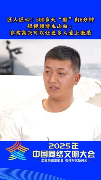 【视频】00后博主向宏俊,网名山白,花费500多天的时间拍摄徽墨制作过程,最后提炼成6分钟的短视频,全网播放量4.9亿。他始终坚守初心,守护文化瑰宝。