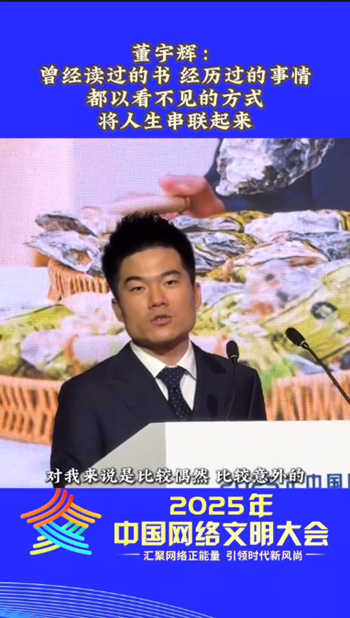 【视频】6月10日,董宇辉现身2025年中国网络文明大会,在优质网络主播培育分论坛进行经验分享。
