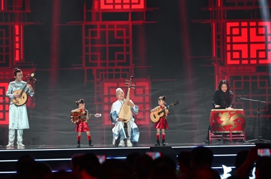 “左手锣,右手鼓,手拿着锣鼓来唱歌……”清脆的童音唱响悦耳的民歌《凤阳花鼓》,穿透会场的空气,将嘉宾的注意力集中到灯光璀璨的舞台上。著名琵琶演奏家方锦龙带领团队表演铿锵振奋的《国乐源流》,拉开整场活动的序幕。