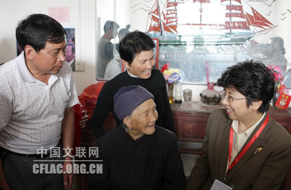 5月13日至14日,中国文联文艺家采风慰问井冈山革命老区行活动在革命圣地井冈山隆重举行。图为中国文联党组书记赵实和井冈山菖蒲古村群众左寒珍交谈。中国文联网 郭青剑 摄
