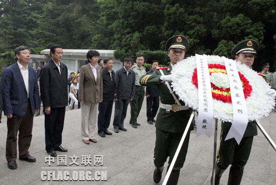 5月13日至14日,中国文联文艺家采风慰问井冈山革命老区行活动在革命圣地井冈山隆重举行。图为中国文联党组书记赵实等在井冈山烈士陵园敬献花圈。中国文联网 郭青剑 摄