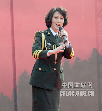 5月13日至14日,中国文联文艺家采风慰问井冈山革命老区行活动在革命圣地井冈山隆重举行。图为殷秀梅演唱。中国文联网 郭青剑 摄