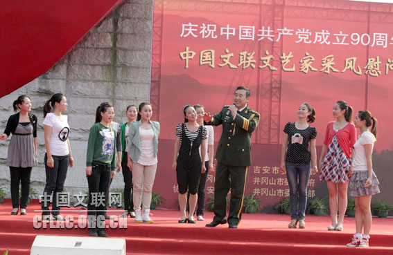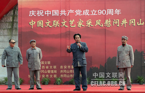 “巍巍井冈,连接着中国共产党艰辛而又辉煌的历史;光荣井冈,写满中国人民伟大复兴的梦想。为喜迎中国共产党成立90周年,按照中央的要求和中国文联的部署,今天,我们组织部分知名文艺家专程来到井冈山,开展走访、采风、慰问活动,目的是重温党的光荣历史,弘扬党的优良传统;向英雄的革命老区人民学习,接受革命传统教育;通过艺术实践把党和政府的关怀送到革命老区、送到基层一线。”在5月13日于井冈山举行的中国文联文艺家采风慰问“井冈山革命老区行”慰问演出现场,中国文联党组书记赵实在致辞中道出了此次活动的目的。