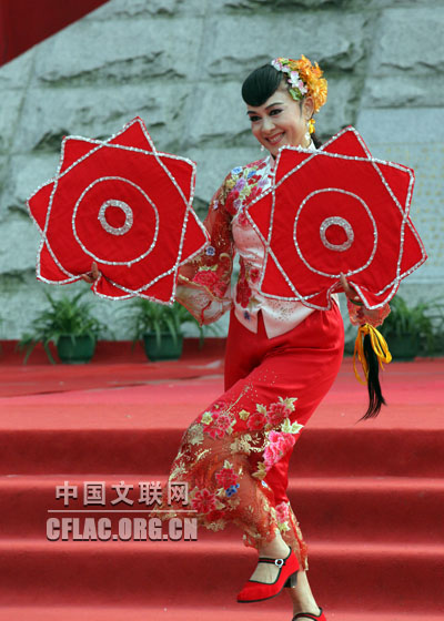 5月13日至14日,中国文联文艺家采风慰问井冈山革命老区行活动在革命圣地井冈山隆重举行。图为王小燕表演舞蹈《井冈山姑娘美》。中国文联网 郭青剑 摄