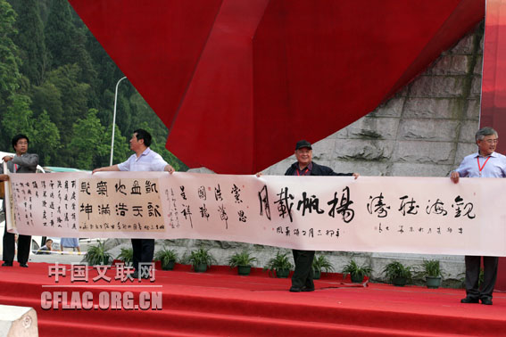 5月13日至14日,中国文联文艺家采风慰问井冈山革命老区行活动在革命圣地井冈山隆重举行。图为书法家展示作品。中国文联网 郭青剑 摄