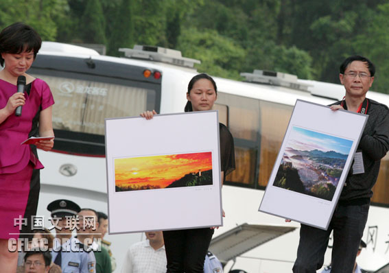 5月13日至14日,中国文联文艺家采风慰问井冈山革命老区行活动在革命圣地井冈山隆重举行。图为摄影家展示作品。中国文联网 郭青剑 摄