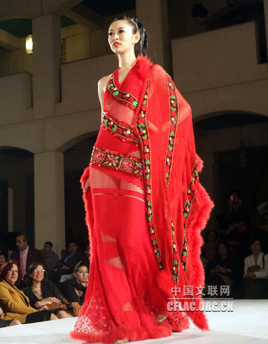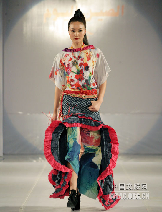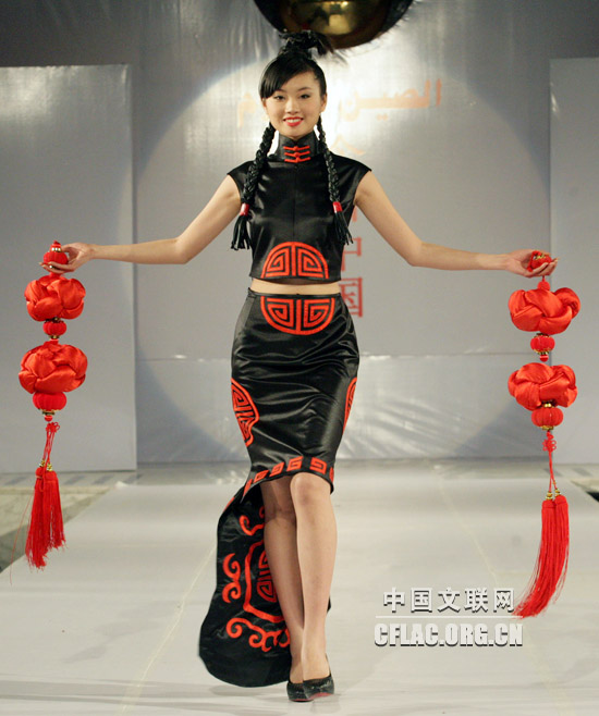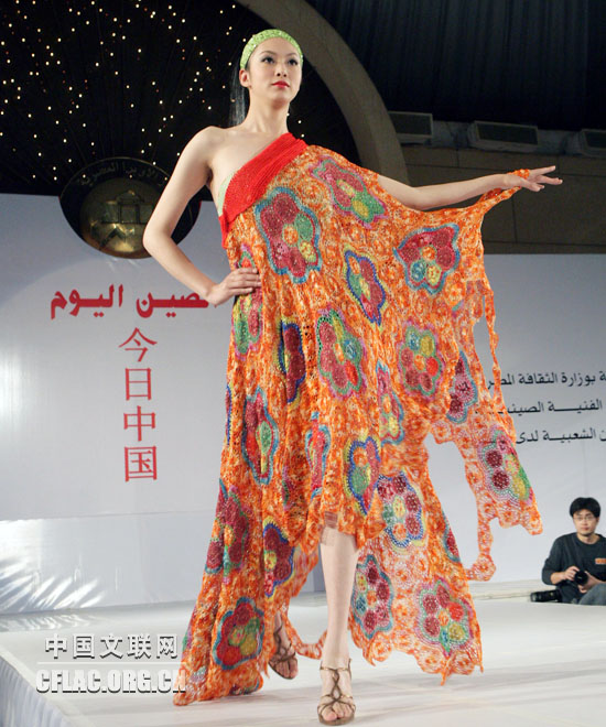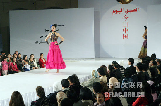 埃及当地时间2月5日,“今日中国”艺术周“中国风”时装展示在开罗歌剧院露天剧场成功举行。图为时装展示现场。中国文联网 孟祥宁 摄